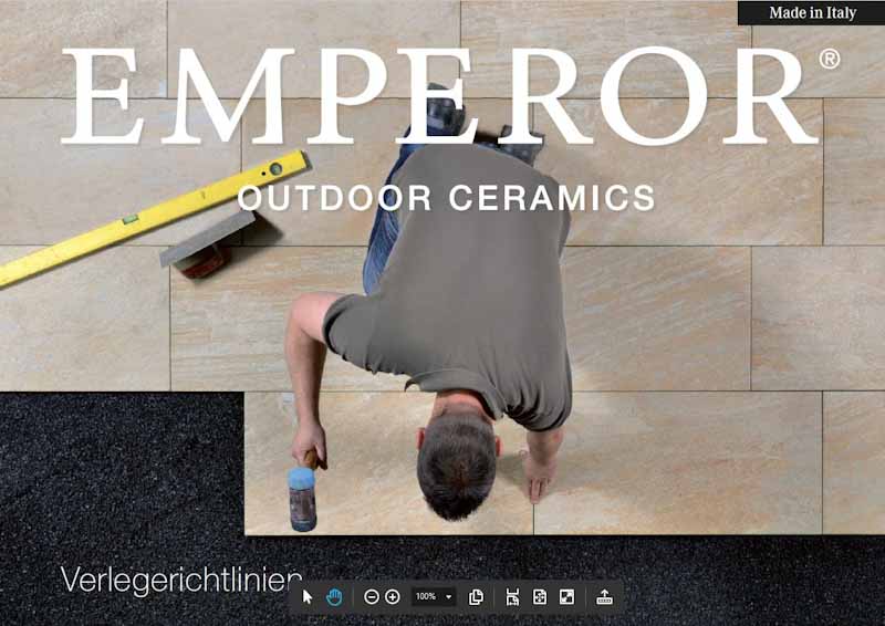EMPEROR® Outdoor Ceramics sind hochwertige Keramik-Terrassenplatten. Dazu werden Bodenbeläge aus natürlichen Materialien wie kalkarmen Tonen, Quarz oder Feldspat hergestellt. Den natürlichen Entstehungsprozessen von Gesteinen nachempfunden, entstehen EMPEROR® Terrassenplatten unter großem Druck und Hitze. Das Ergebnis sind hochwertige Feinsteinzeugprodukte, die in vielen individuellen Optiken und Stärken, Texturen und Designs, Formaten und System-Elementen erhältlich sind.
