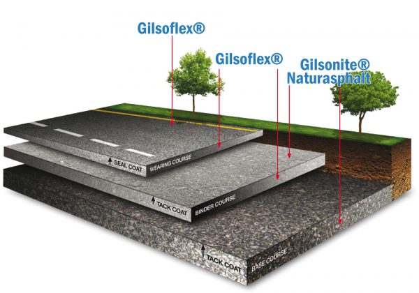 Eingesetzt im Straßenbauasphalt wirkt Gilsonite® zur Stabilisierung von Asphalt bzw. gegen die Bildung von Spurrinnen, wie z.B. bei