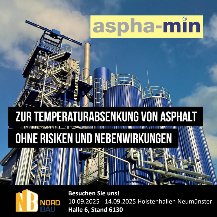 In wenigen Tagen - am 10.09.2025 - startet in Neumünster die NordBau mit ihrer diesjährigen Schwerpunktaustellung zur Temperaturabsenkung von Asphalt. Dabei dreht sich alles um den Arbeitsschutz im Asphaltstraßenbau und die Reduzierung von Dämpfen und Aerosolen aus der Heißverarbeitung von Bitumen.
